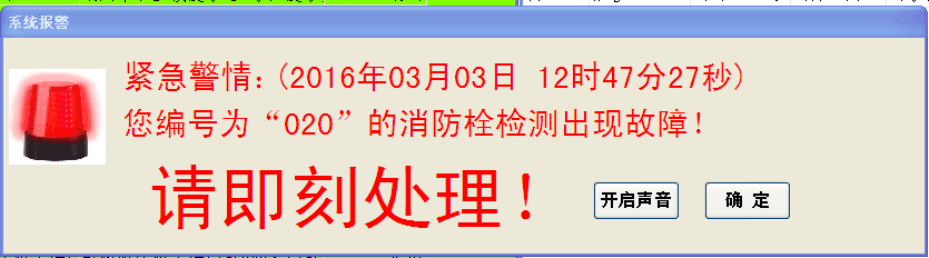 监控中心告警 可详细显示消防栓位置,实景,水压情况,水压低于警戒线声光报警,自然水源可实景显示。